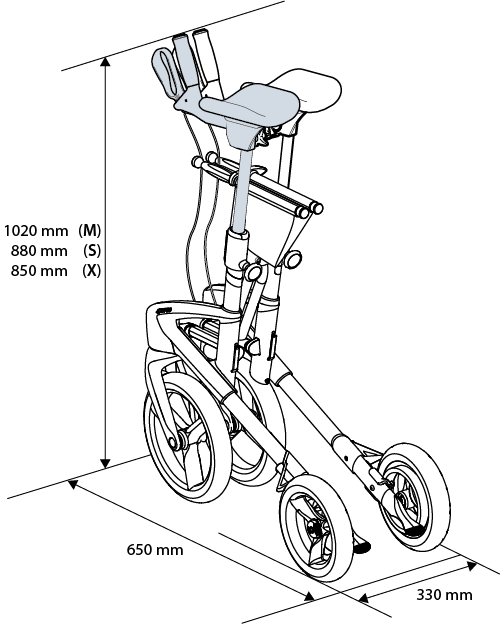 | Mått hopfälld (l × b × h) | 650 × 330 × 1020 mm | 650 × 330 × 880 mm | 650 × 330 × 880 mm |
